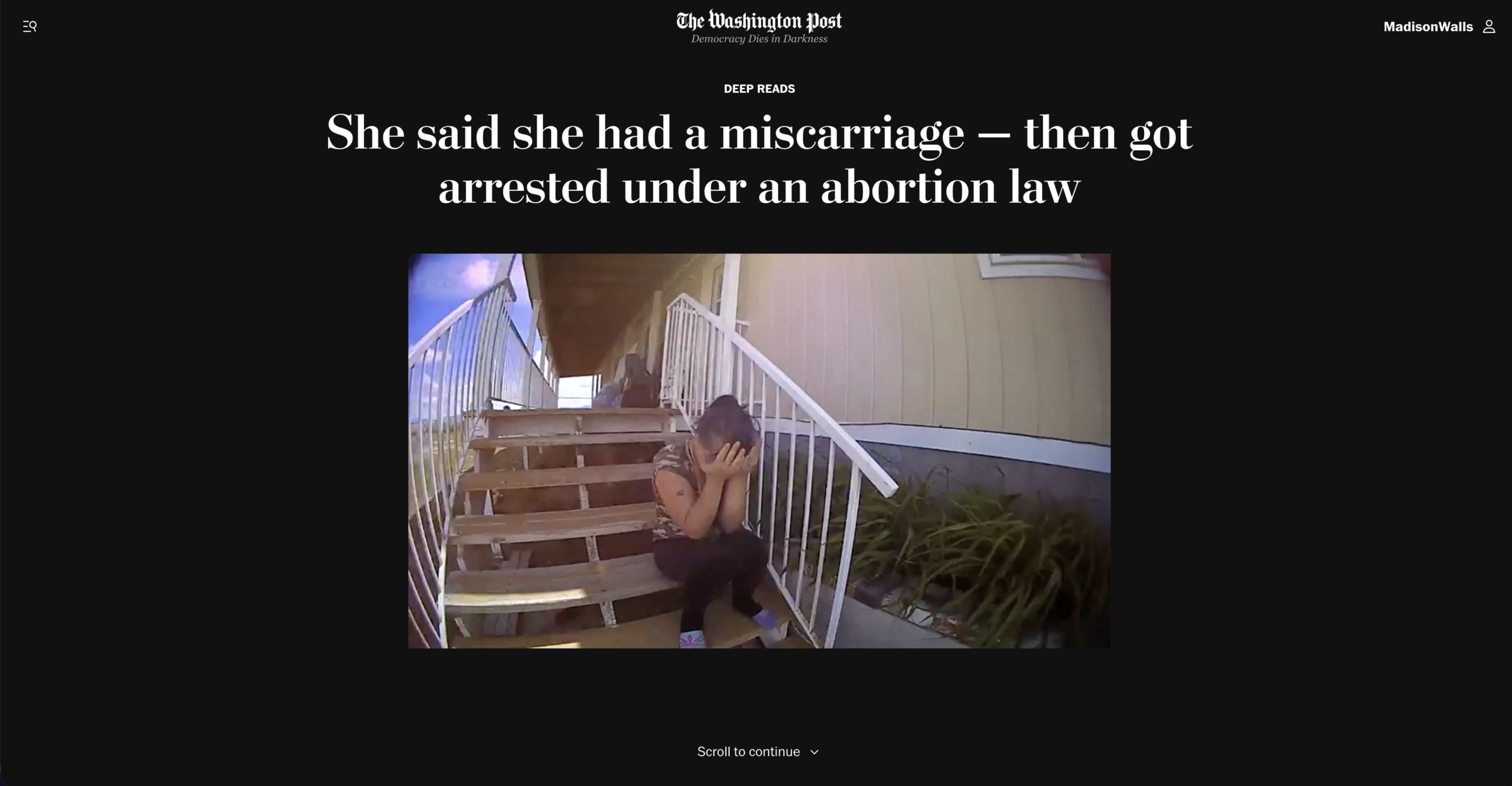 2023 Pulitzer Prize for national reporting, entry in Caroline Kitchener’s package on life after Roe v. Wade; 2023 SND Award of Excellence social issues line of coverage